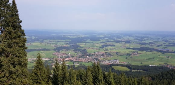 AusblickNesselwang vom Hausberg gesehen. Die Seilbahn kann mit der Königscard jeden Tag einmal kostenlos genutzt werden.