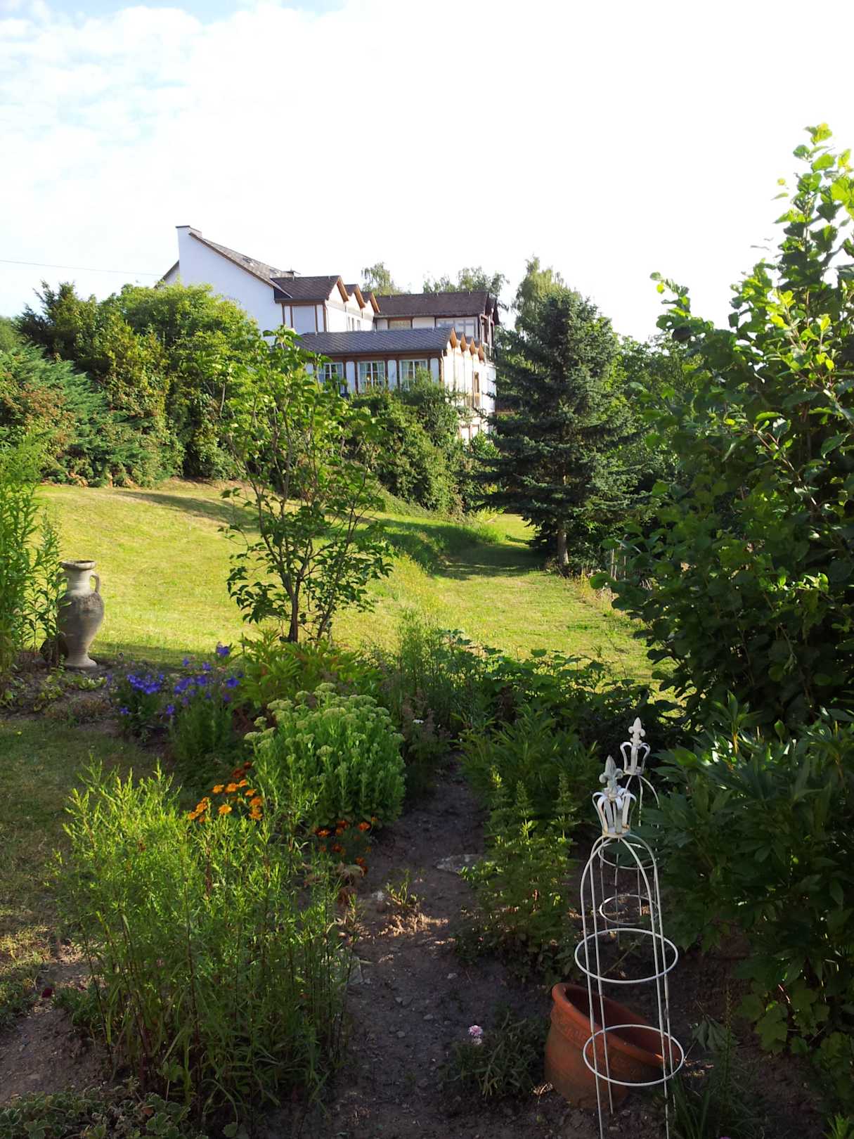 Blick vom Gästehaus auf das Haupthaus