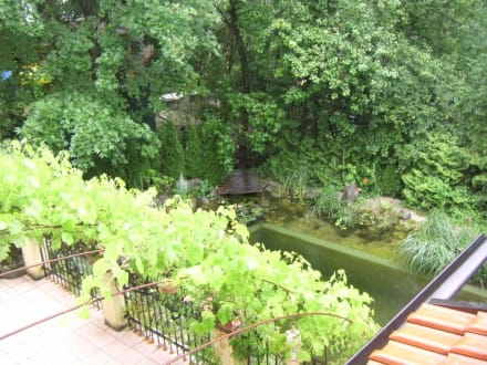 Blick vom Balkon zum Pool Landhaus Südwind