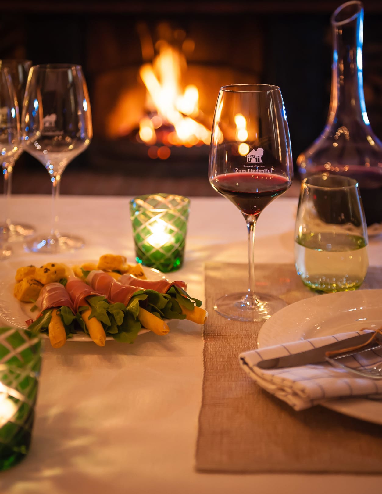 Weingenuß am offenen Kamin