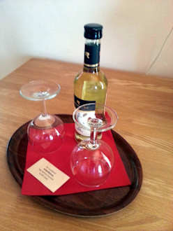 Netter Empfang mit Wein in der Wohnung