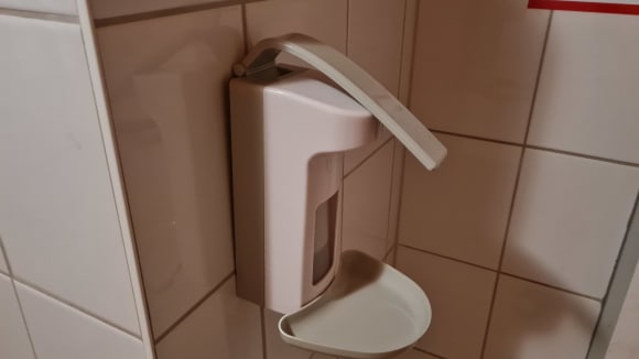 SonstigesDieser Desinfektionsspender in der öffentlichen Herrntoilette war die ganze Zeit defekt.