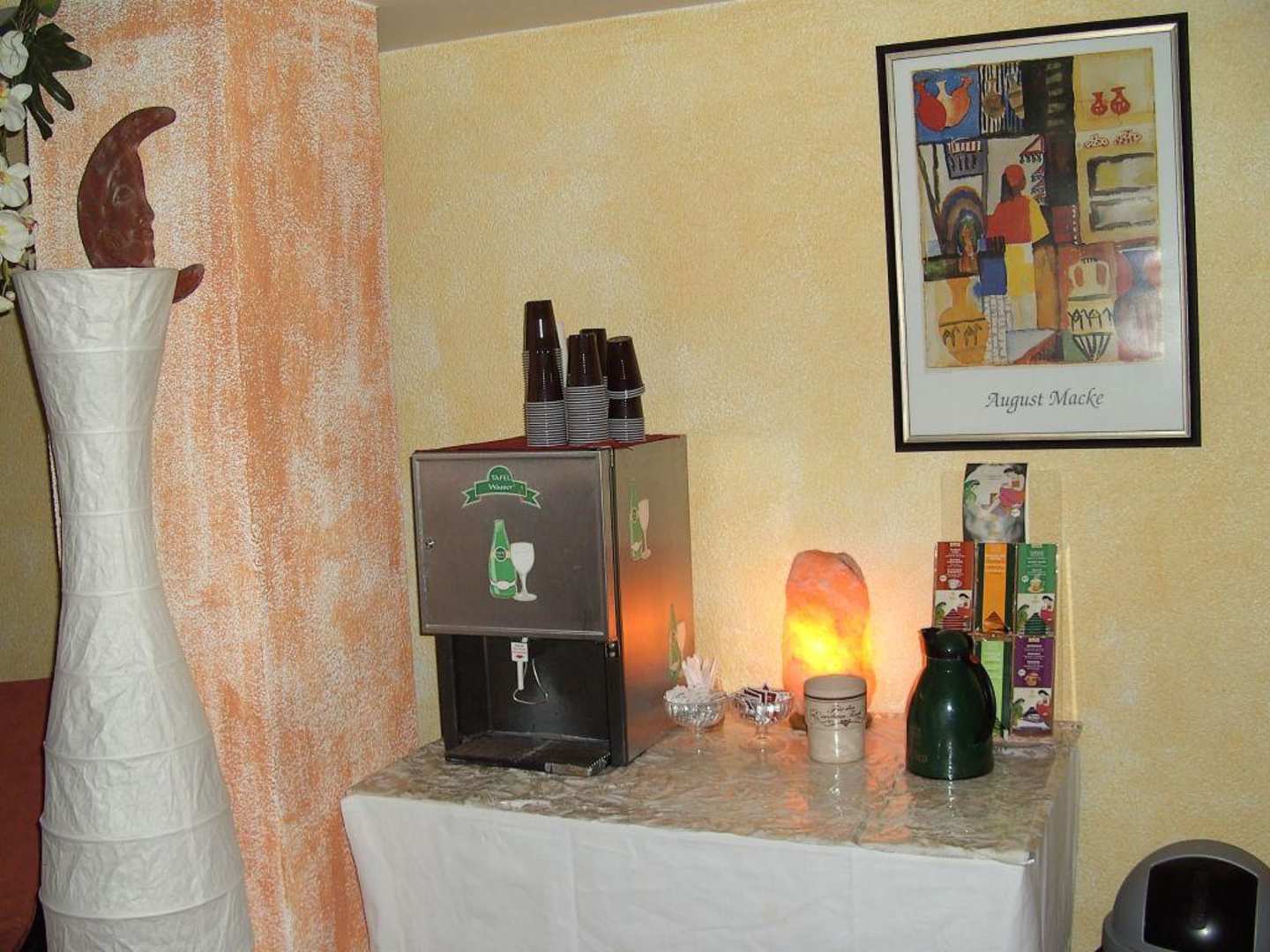 Sauna Landhotel Krone RoggenbeurenTee+Wasser im Ruheraum Sauna Landhotel Krone Roggenbeuren