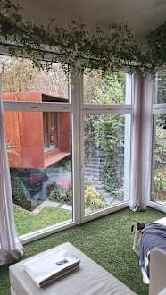 Im Saunabereich mit Blick zur Panoramasauna