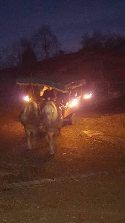Nikolaus und das Christkind kommen mit der Kutsche