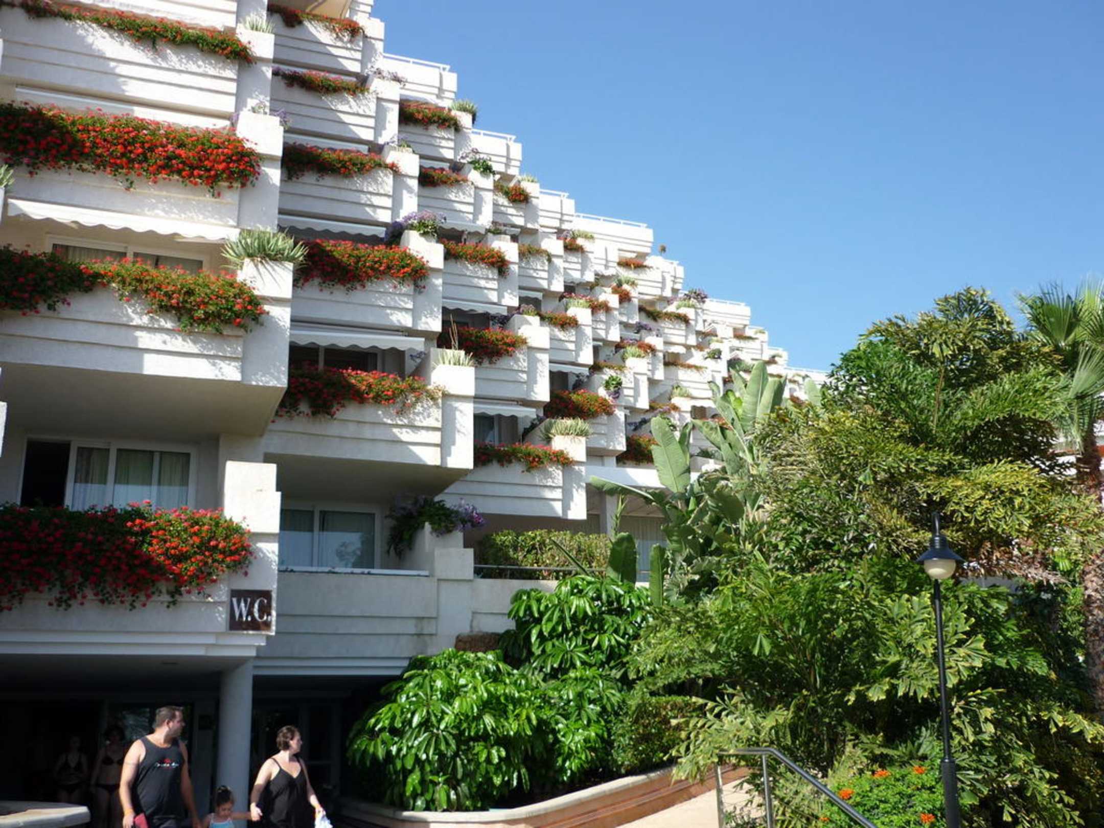 Blick vom Pool aufs Hotel