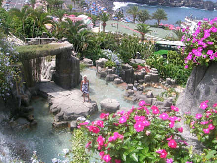 Wasserfall hinter Pool