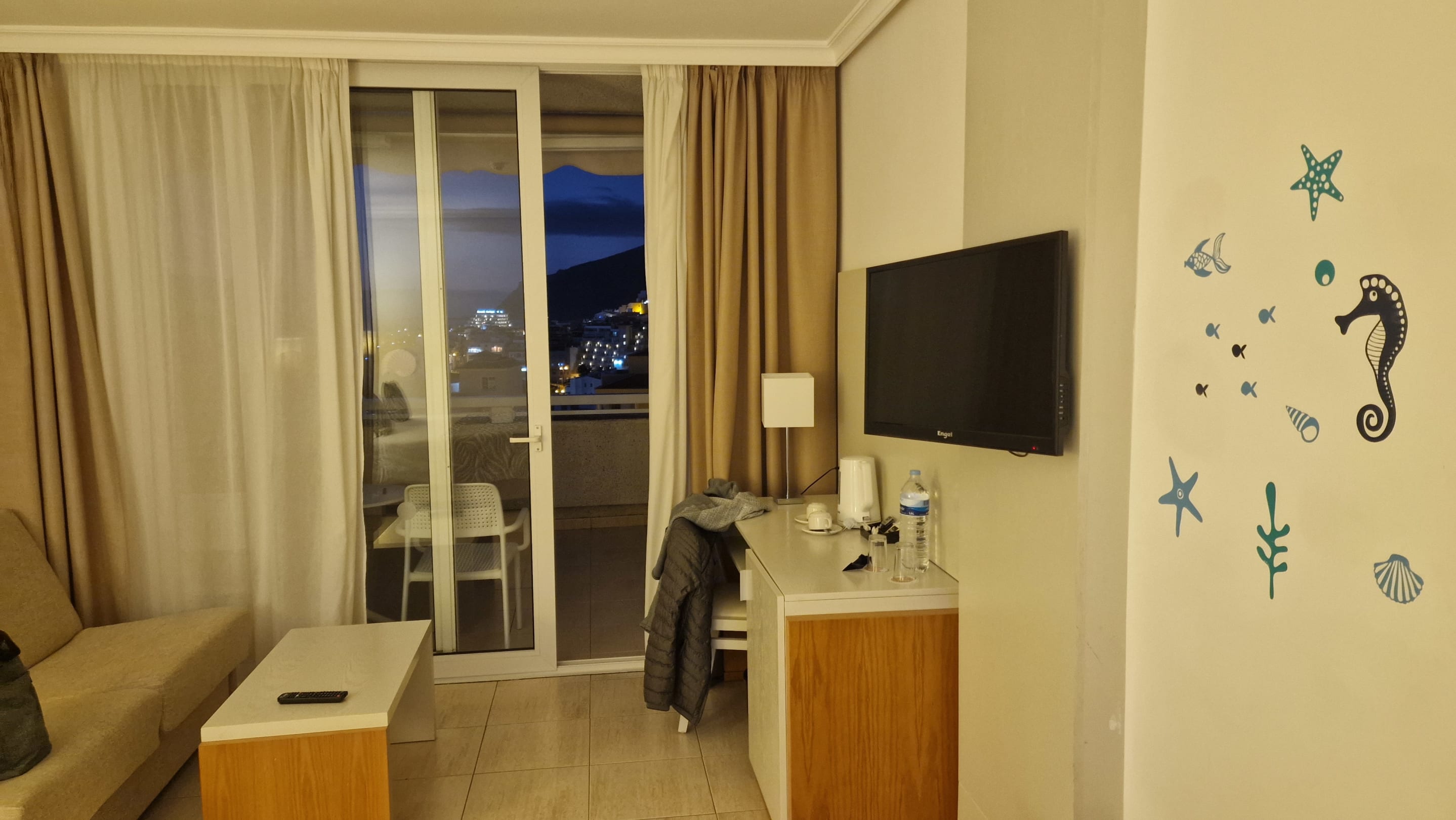 Die Zimmer sind sehr geräumig, Bett und Couch, Balkon hatte seitlichen Meerblick, Alles sehr sauber
