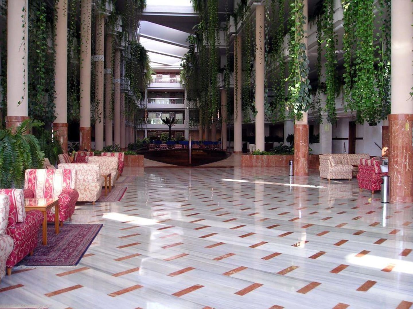 Eingangsbereichvom Eingang kommend Richtung dreier Aufzüge des Hotels