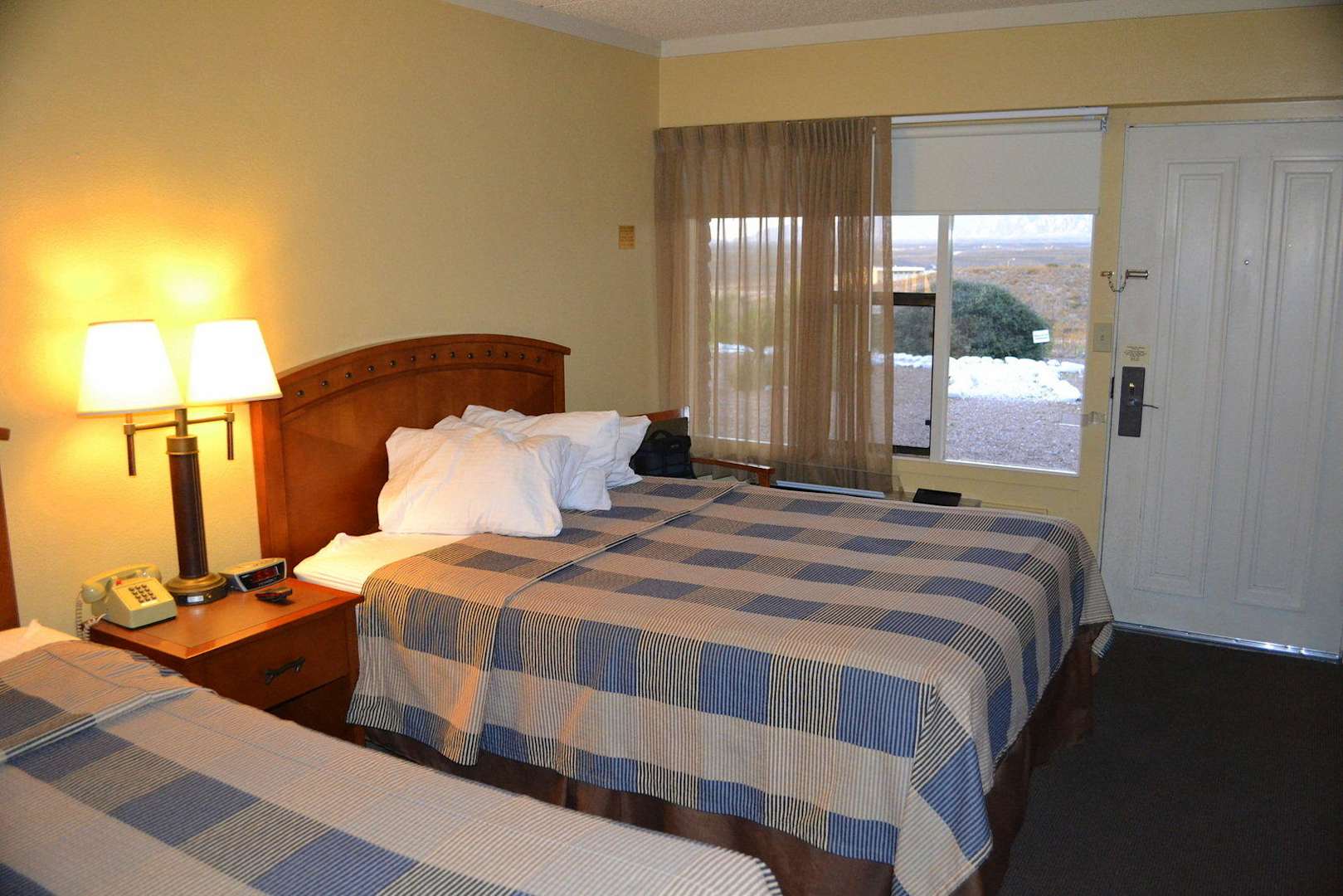 Vom Zimmer aus kann man durchs Fenster in die Prärie blicken