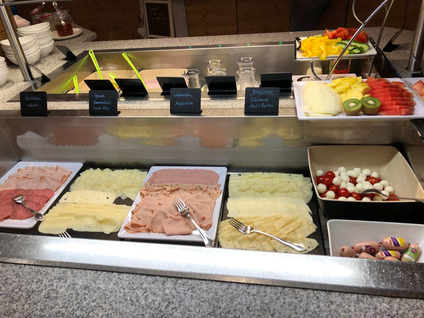 Käse und Wurst sowie Aufstriche zum Frühstück