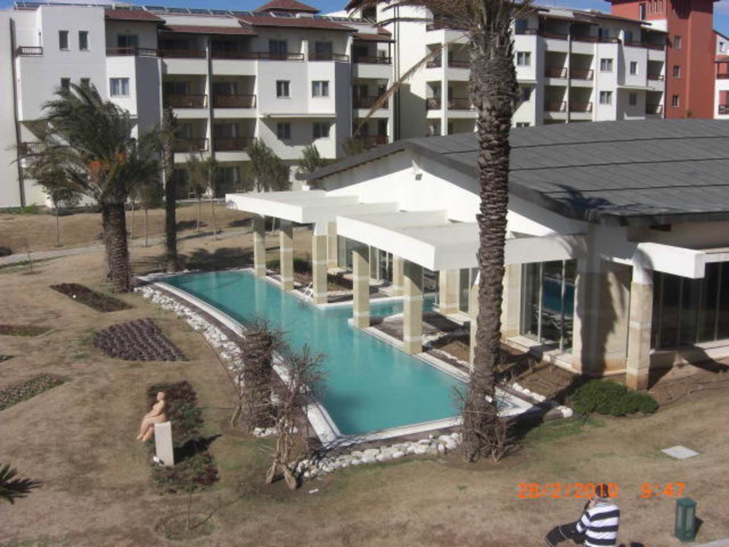 Blick von der Terrasse auf den Innenpool