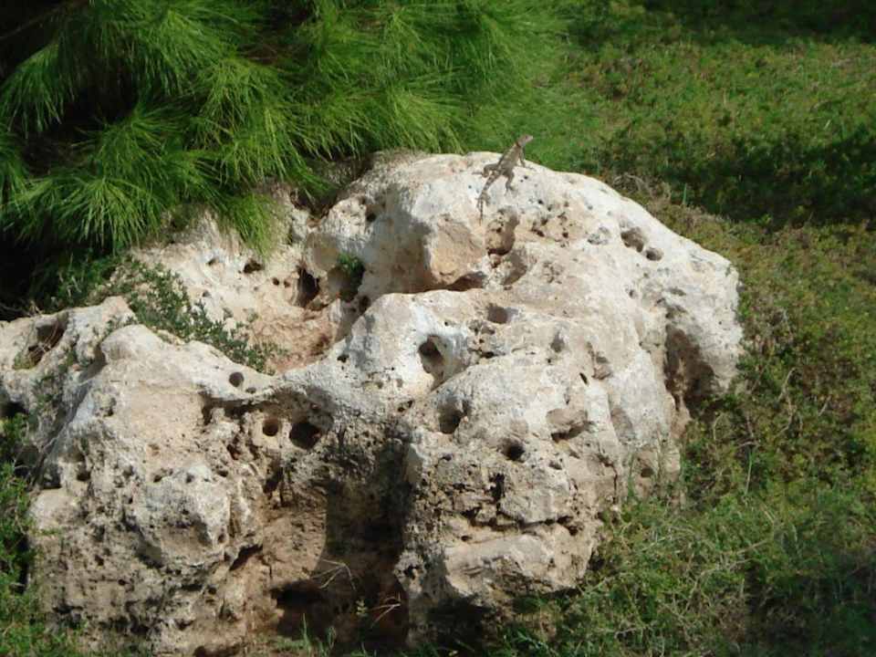 Eidechsen in allen Größen liegen zum Sonnenbad auf den Steinen.