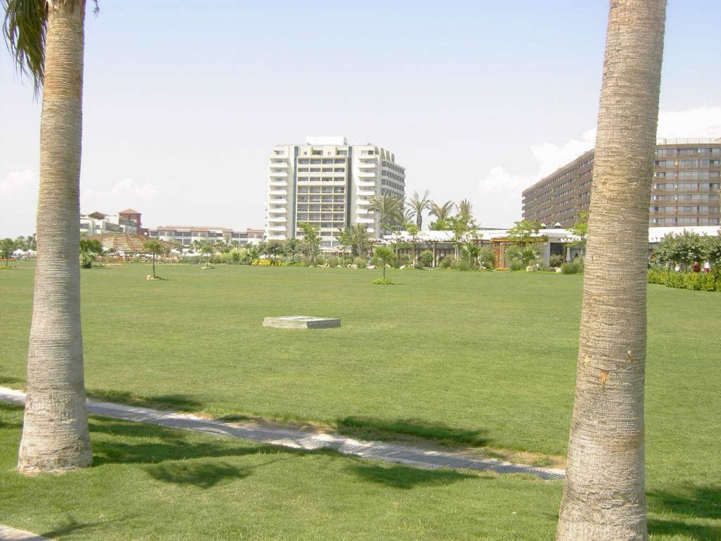 Hotel vom Strand ausDas kleine helle Hotel ist das Barut und das daneben ist das Kervansaray vom Beach-Restaurant fotografiert.