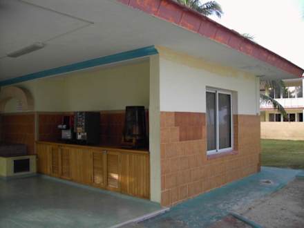 Eine Selbstbedienungstheke in der HotelanlageBei diesem Gebäude handelt es sich um eine Art Aussenrestaurant, allerdings gab es ausser den "Snacks" dort nichts. Die Getränkeautomaten waren extrem verschmiert und dreckig und am kompletten Gebäude (ebenso wie eigentlich im ganzen Hotel) fiel der Putz von den Wänden.
