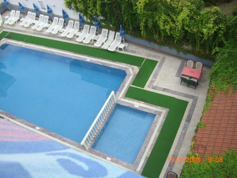 Ausblick vom Balkon auf den Pool
