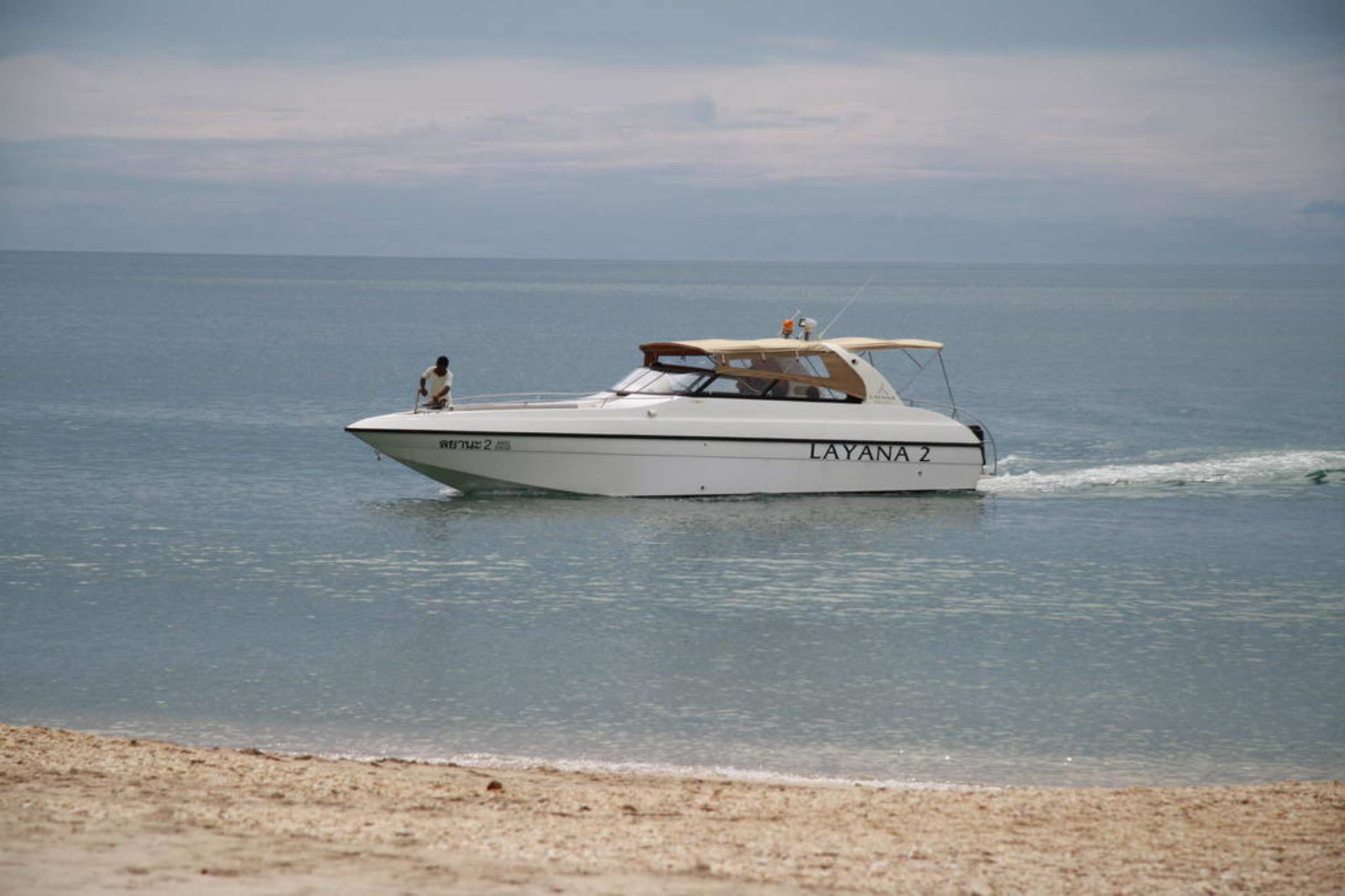 Layana 2Eines der 2 Speedboats. Wenn man glück mit dem Wetter hat wird man samt Gepäck am Strand abgesetzt.