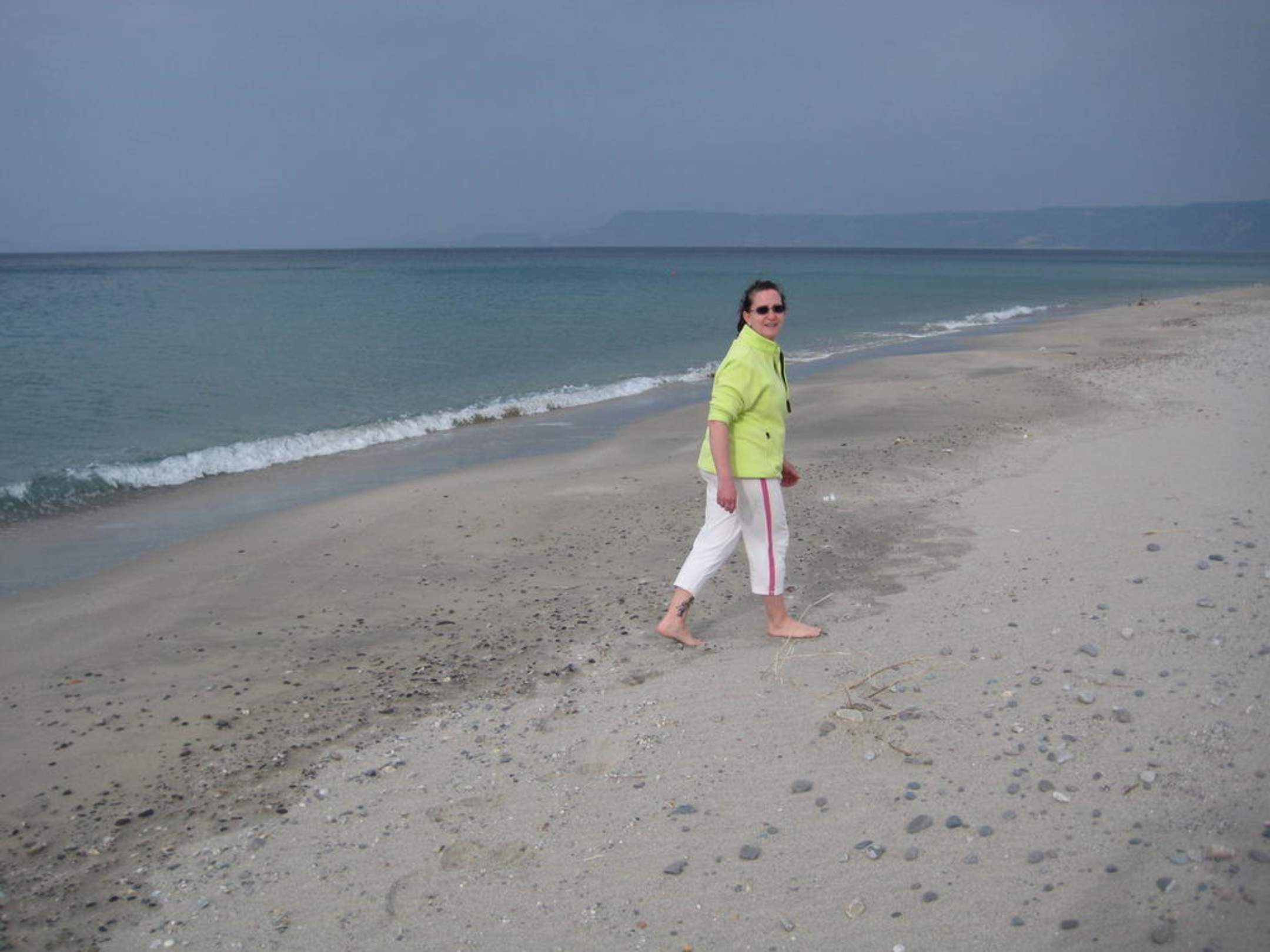 Strand war noch nicht zum Saisonstart vorbereitet, im Hintergrund Kalabrien