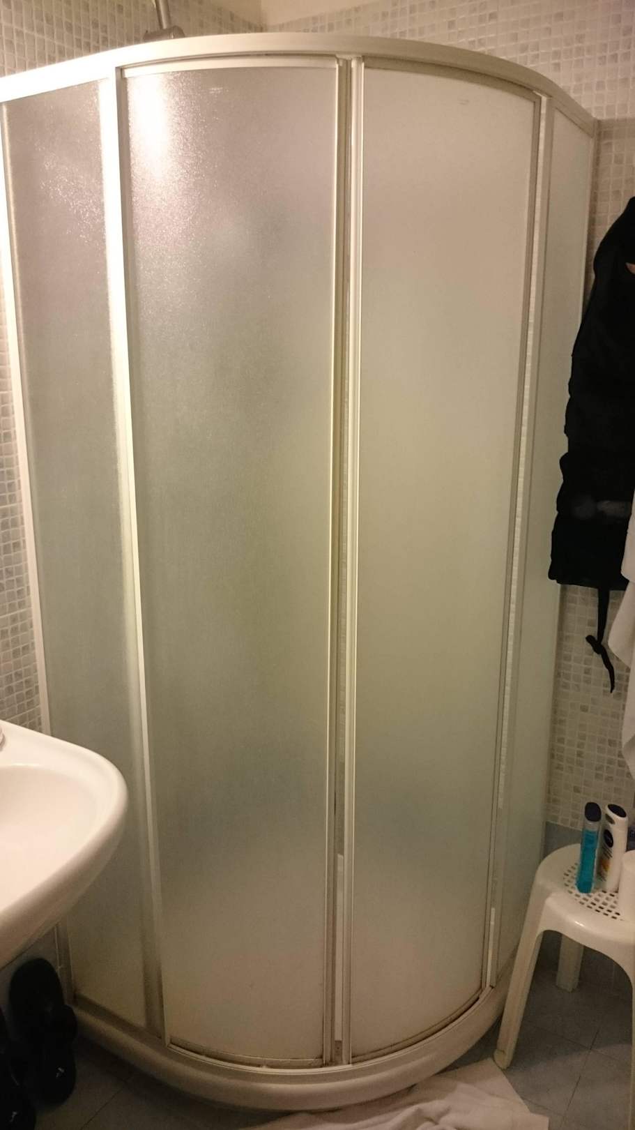 Die Dusche ging leider nicht ganz zu, so daß immer Wasser herausgespritzt ist.