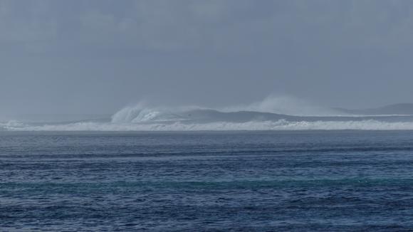 Bei auflaufender Flut oder Starkwind riesige Brandung am Aussenriff