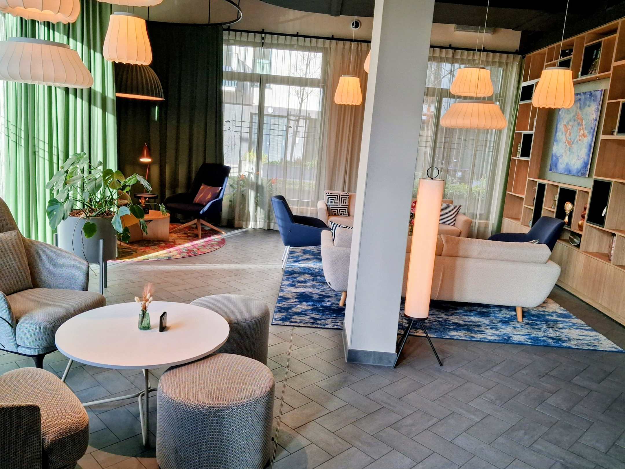 Sitzbereich bei den Fahrstühlen.