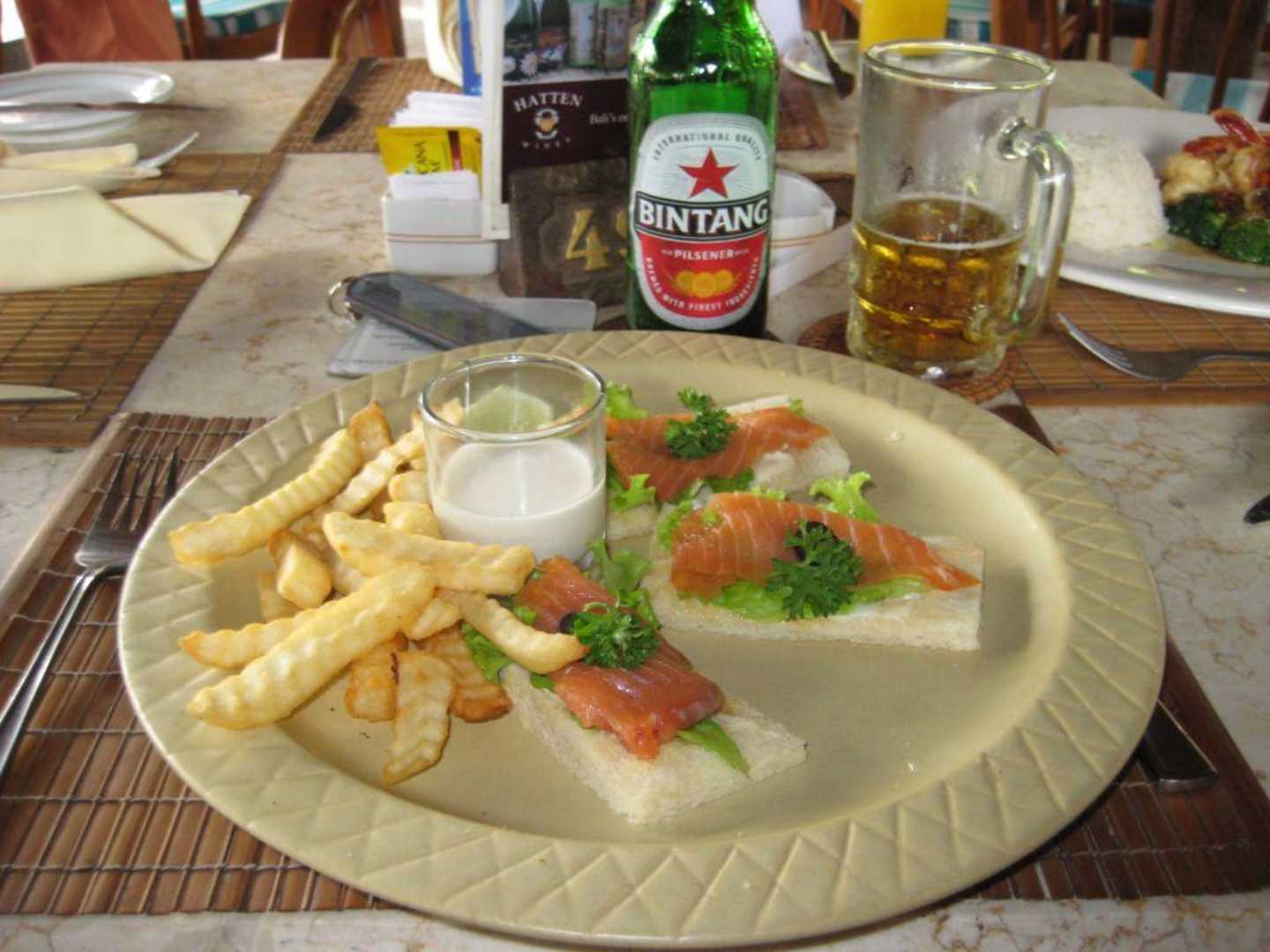 Snack zum mittag (Lachs auf Toast mit Pommes)