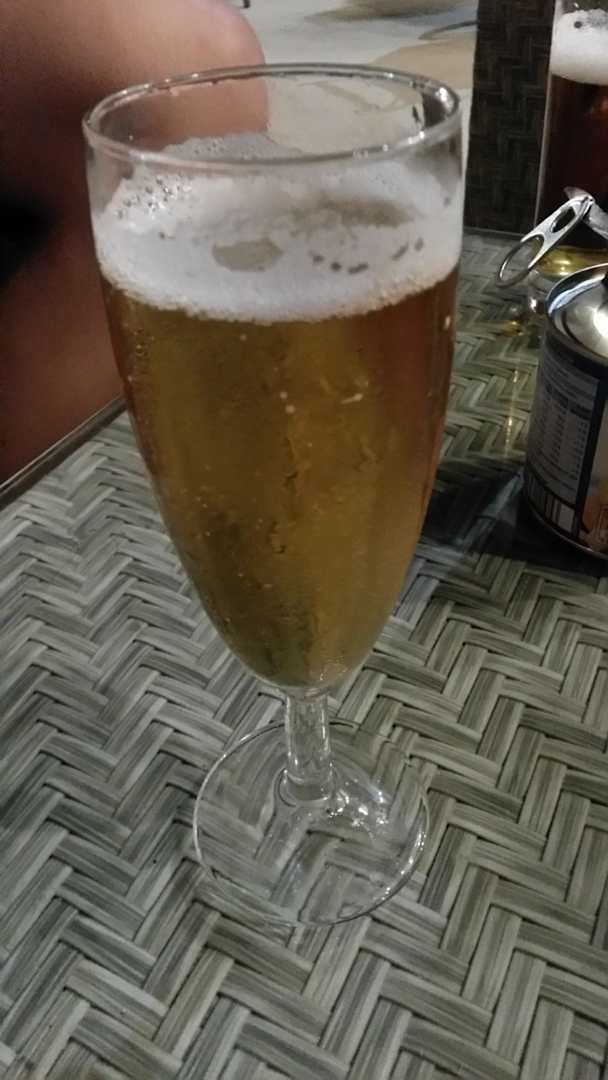 Gläser waren aus, daher Bier im Sektglas