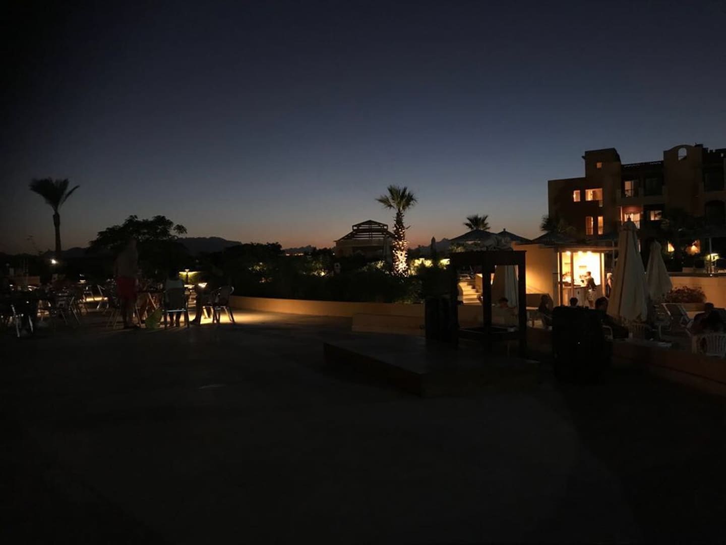 Sitzplätze für Strandbaar und Restaurant bei Nacht