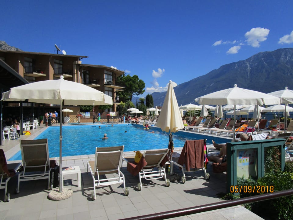 Pool mit reichlich Liegen und Sonnenschirmen