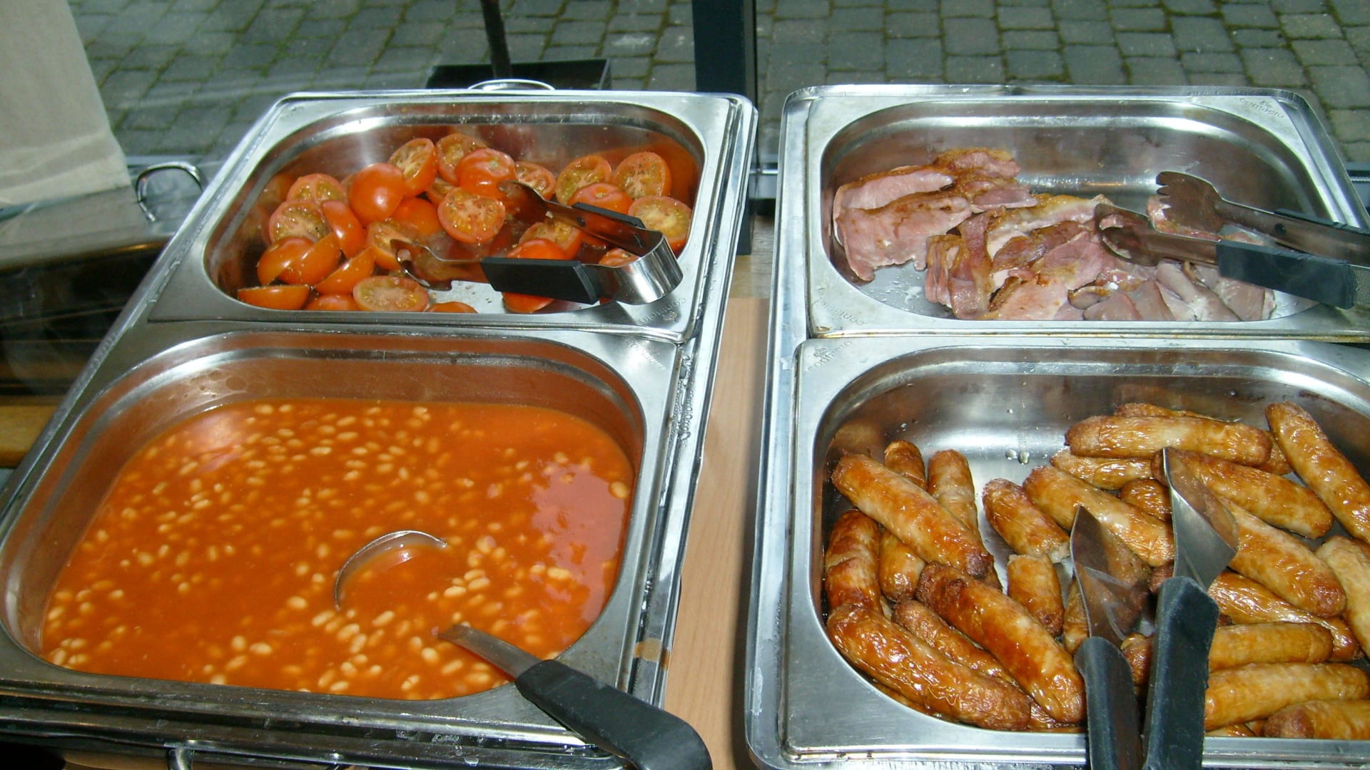 Typisch Englisch. Weise Bohnen, Speck, Würstchen