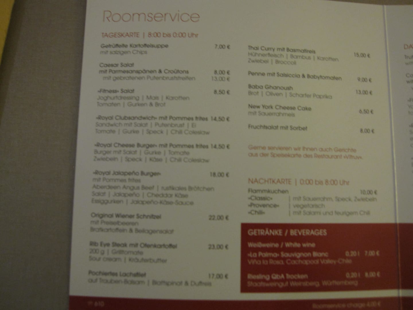 Roomservice-Preise (deutsch)