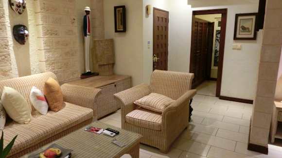 Bildmitte der Ausgang, rechts das kleine Ankleidezimmer mt Bügelbrett und Bügeleisen.