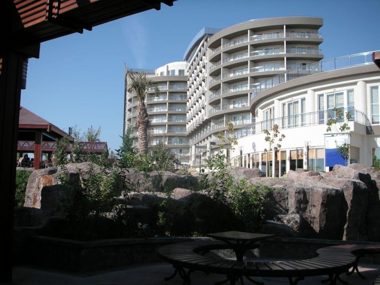 Hier sieht man das Hotel wenn man vom Cafe kommt