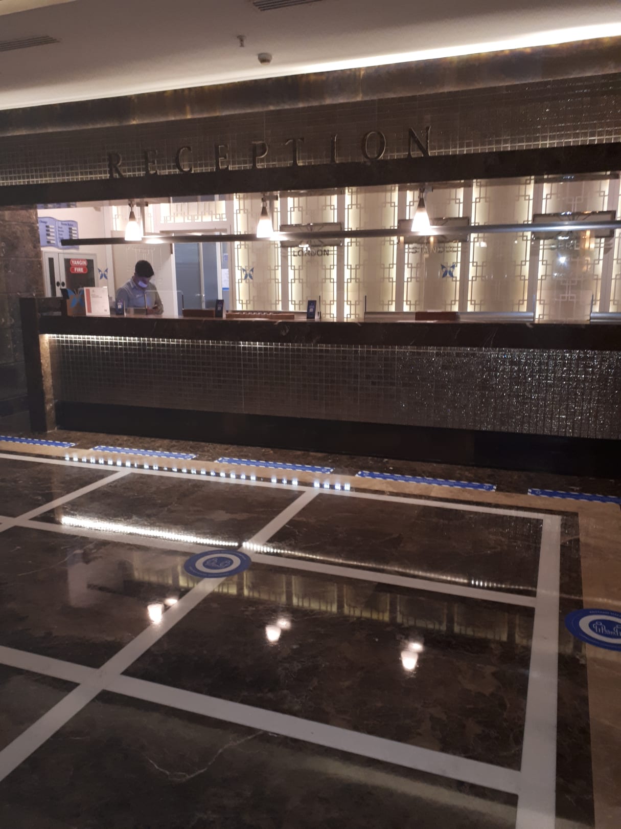 Abstandsmarkierungen in der Lobby