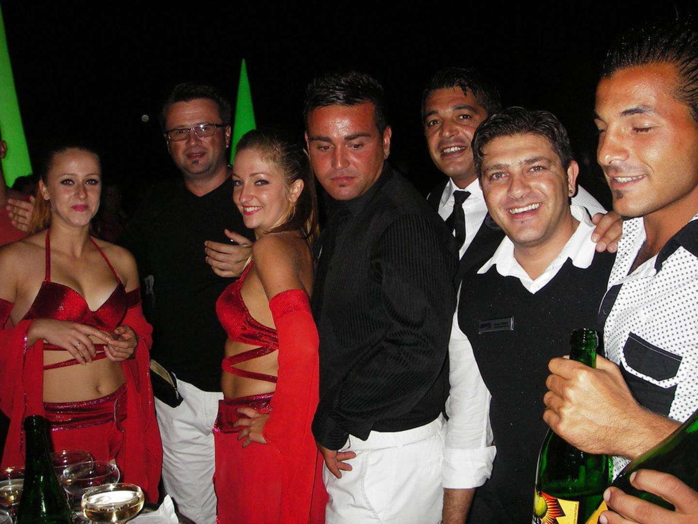 Die Animateure bei der Champagner-Pyramide