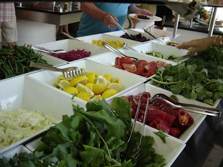 Salatbeilagen-Auswahl - es gab ebenso viele Dressings!