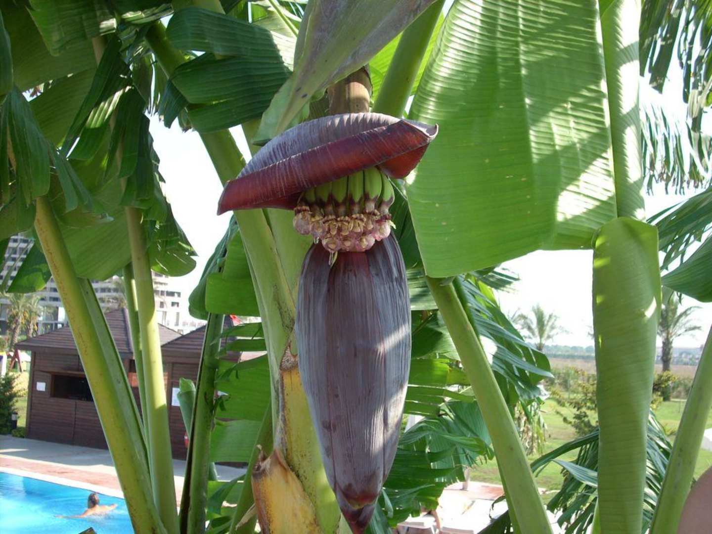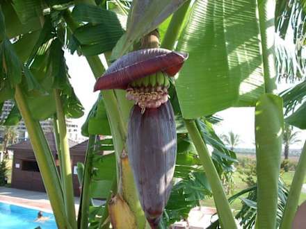 Hier eine der Bananenstauden der Gartenanlage. Die Gartenanlage umfasste verschiedene Pflanzen: Bananen, Orangen, Oliven, Dattelpalmen... gegen Abend verströmten die Engelstrompeten einen wunderschönen Duft.