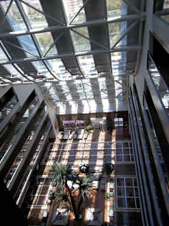 Blick vom Glaslift auf die Lobby