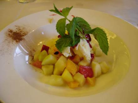 Obstsalat mit Zitroneneis (Italienisches Restaurant)