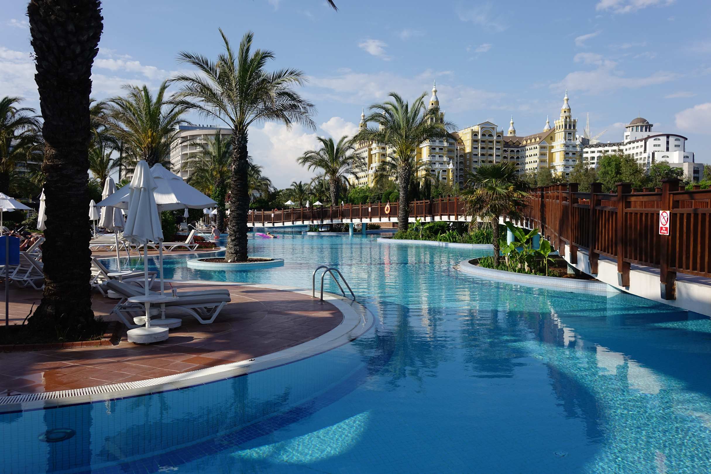 Pool mit Hotel (links) und Nachbarhotel