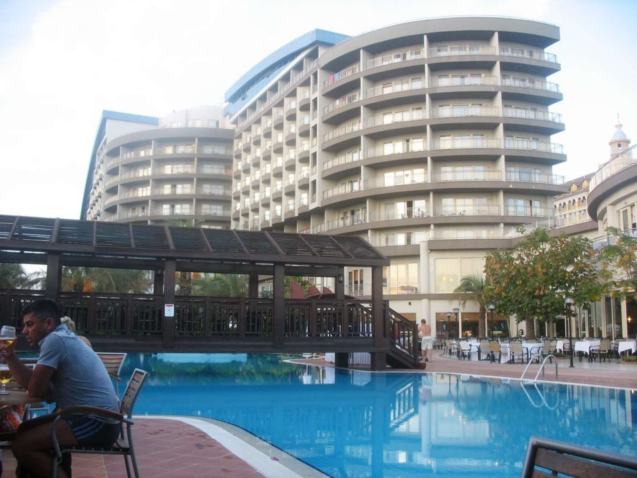 Blick vom Nudelrestaurant zum Hotel