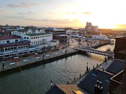 Blick über den Hafen und den Ort Büsum
