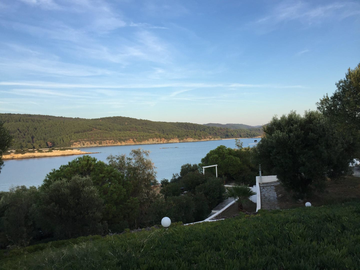 Blick auf die Gartenanlage und Meer