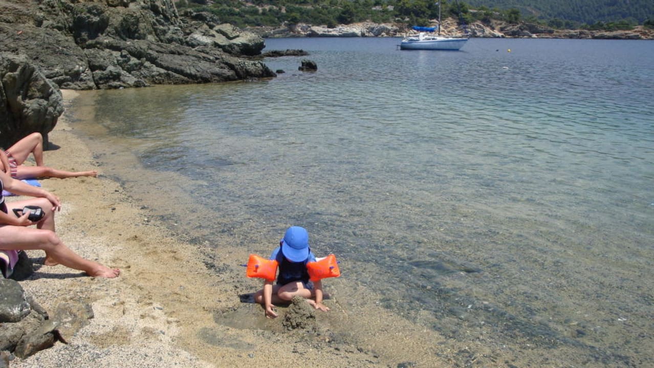 Sehr schön gelegen, da in geschlossener Bucht kein Wellengang und für kleine Kinder gut geeignet. Achtung, Wasser wird nach wenigen Metern tief, für Kinder unbedingt Schwimmhilfen benutzen. Am Strand sehr wenig Platz