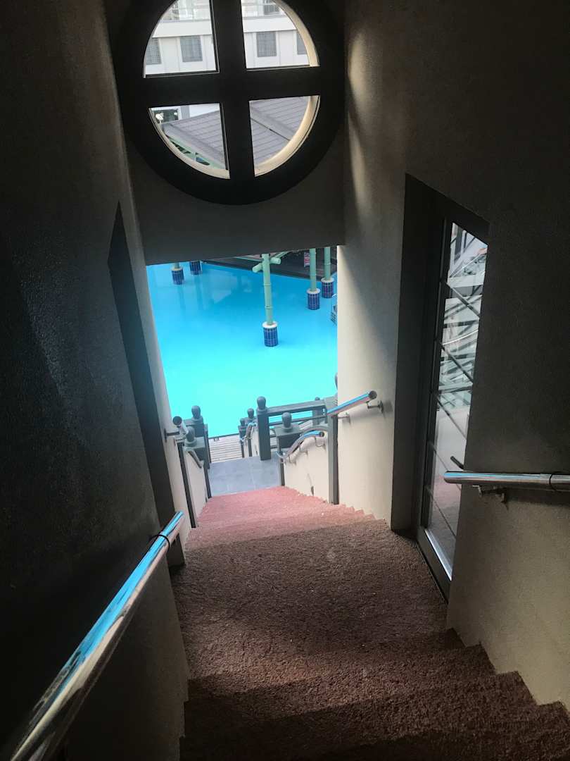 Treppe zum Innenpool vom Familienzimmer aus