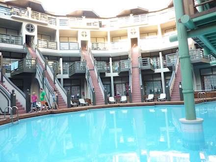 Der Pool ist von den Familienzimmern aus, über eine Treppe erreichbar.