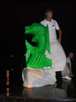 diese Skulptur hat der Chefkoch aus einen Klotz Eis gesägt