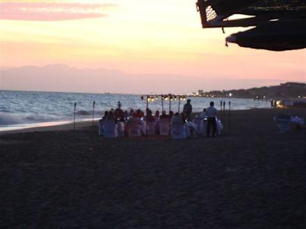 Linda-Strand am Abend großes Buffet am Strand