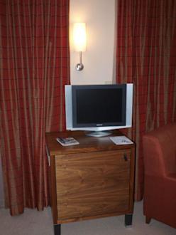 Unsere JuniorsuiteDer Fernseher hätte, bei der größe des Zimmers, eine Nummer größer sein können. Darunter befindet sich die Minibar.