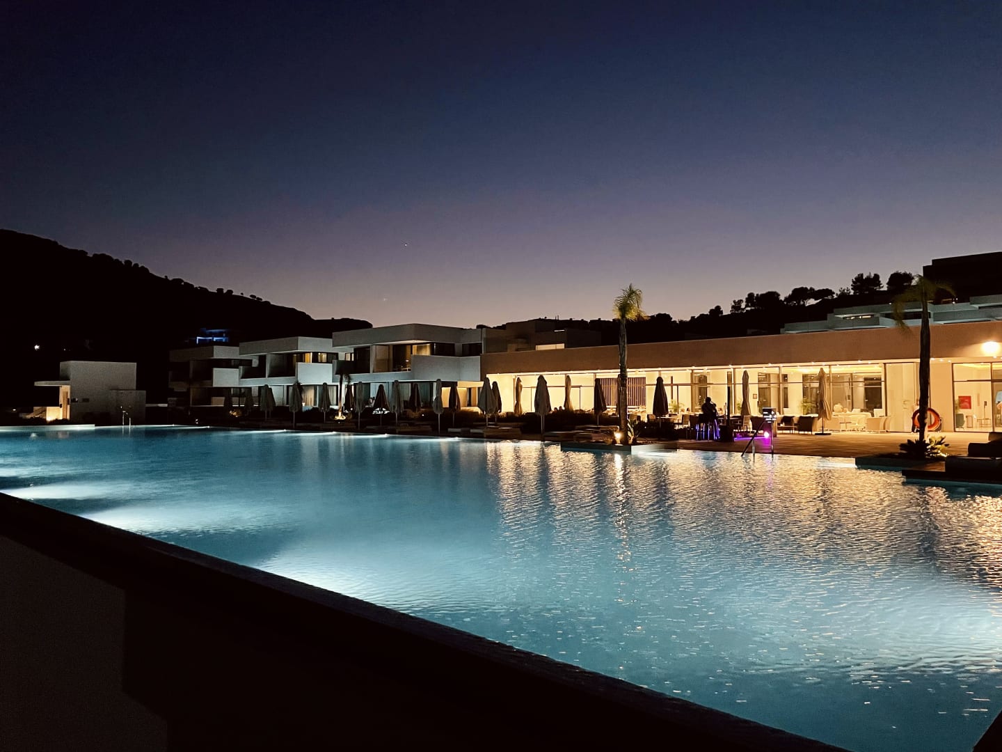 Hotelpool am Abend